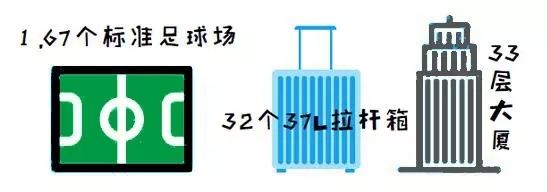 把一亿元换成百元钞,要用16台点钞机连续工作1个小时才能点完所有钞票;如果将其铺开,相当于1.67个标准足球场的面积;这些钞票若用37L的拉杆箱来装,需要32个拉杆箱;若将这些钱叠加起来,高度为100米,相当于33层大厦。
