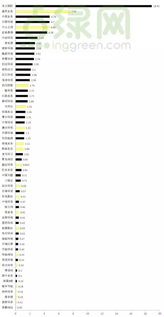 注:统计范围为A股和H股环保上市公司(环保业务收入占总收入一定比例以上),节能企业未包括在内。